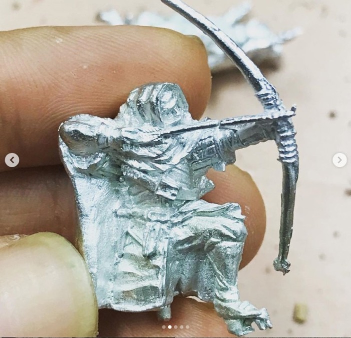自分がメタルフィギュアを作る際には①パテの原型(まれに3D出力もあり)⇒②自分でシリコン型を作り、メタルの複製を取る⇒③大阪のクラフトカンパニー様で生産という流れです。本来は原型での複製が一番シャープなのですが、今現在は予算や段取りの都合この流れです。写真のストライダーは②の複製で矢がきれいに出ずに泣かされました。